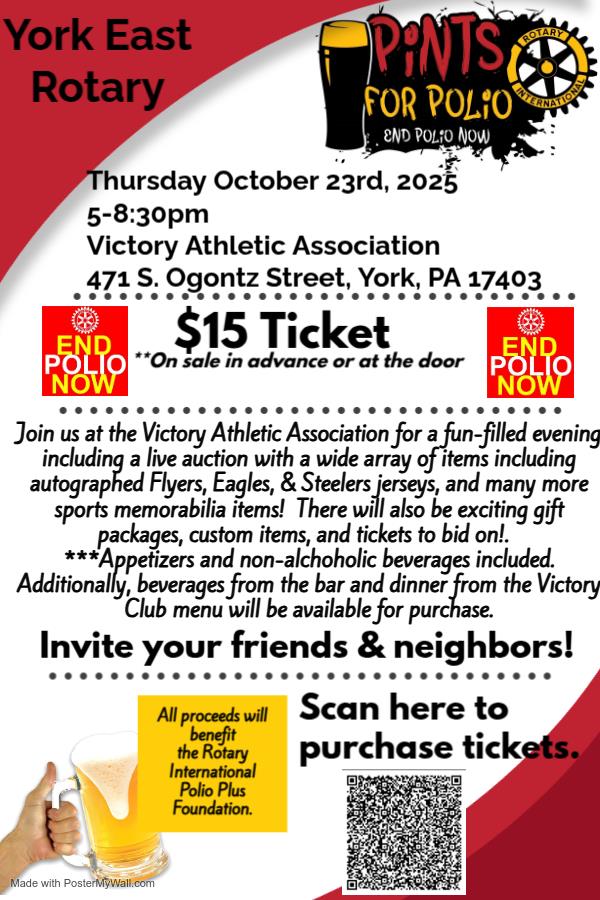 YORK EAST ROTARY HOSTS “PINTS FOR POLIO” - OCT. 23